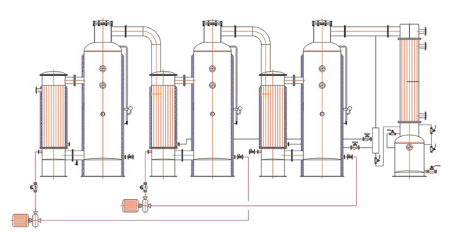 5. 采用多效蒸发,二、三次蒸气可得到重复使用,节能效果显著,操作方便、安装简单。